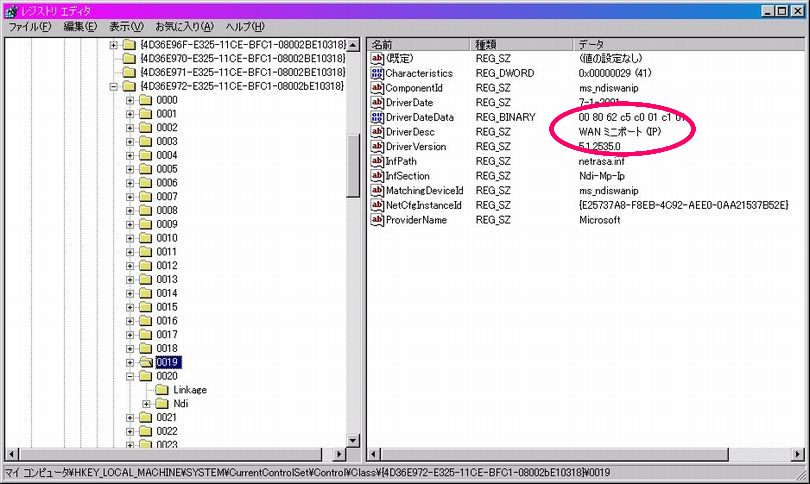 はじめに、レジストリを消します。レジストリの番号はそれぞれ違うみたいです。