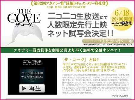 抗議活動で上映中止が相次ぐ『ザ・コーヴ』、18日夜にニコニコ動画で無料上映! | 映画/DVD/海外ドラマ | MOVIE Collection [ムビコレ]
