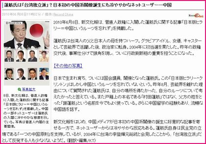 蓮舫氏は「台湾独立派」?日本初の中国系閣僚誕生にも冷ややかなネットユーザー―中国(Record China) - livedoor ニュース