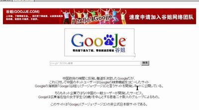 中国の女性らがGoogleが撤退するのに抗議して、Googleをパクったサイトを作ったそうです。