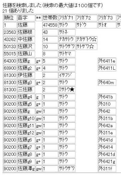 全国の苗字(名字)
