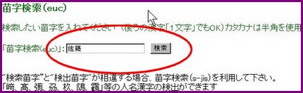 「1.苗字検索」を選択