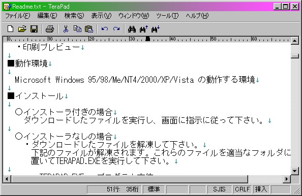 シンプルなテキストエディタ Tera pad